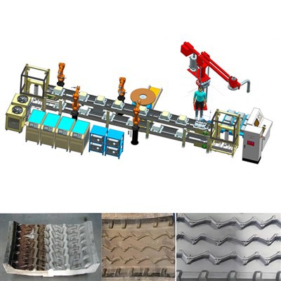 یہ سامان مرکزی جسم کے طور پر ایک ڈبل - اسپیڈ چین کا استعمال کرتا ہے ، اور ٹائر سڑنا سائیڈ پینلز اور ٹائر سڑنا ٹریڈ بلاکس کی صفائی کا احساس کرنے کے لئے 2 روبوٹ اور 1 پوزیشنر سے لیس ہے۔ پیٹرن بلاکس میں پیچیدہ بناوٹ ہے ، اور صفائی کے راستے کو بناوٹ کے مطابق تبدیل کرنے کی ضرورت ہے۔ دو روبوٹ مختلف سمتوں میں صفائی کے ذمہ دار ہیں ، جو تیز اور موثر ہے۔ مواد کو خود بخود لوڈ اور ان لوڈ کرنے کے لئے ٹائر سڑنا کے سائیڈ پینلز کو پوزیشنر پر رکھا جاسکتا ہے۔ صفائی کے دوران ، آپ کو صرف روبوٹ کی کرنسی کو ایڈجسٹ کرنے کی ضرورت ہے ، اور پوزیشنر خود بخود صفائی کے لئے گھوم جائے گا۔ صفائی کا کام شروع ہونے سے پہلے ، ایک خودکار شناختی آلہ موجود ہے جو خود بخود ورک پیس ماڈل کی شناخت کرسکتا ہے۔ اگر آپریٹر غلط مولڈ ماڈل رکھتا ہے تو ، نظام خود بخود اس کی شناخت کرے گا اور الارم پیدا کرے گا۔